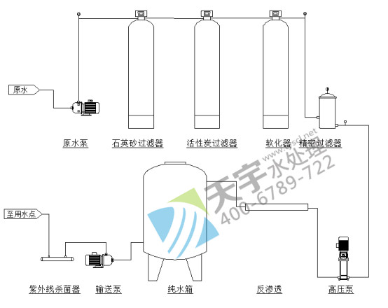 處理方式:預(yù)處理+單級反滲透+恒壓輸送殺菌系統(tǒng)
