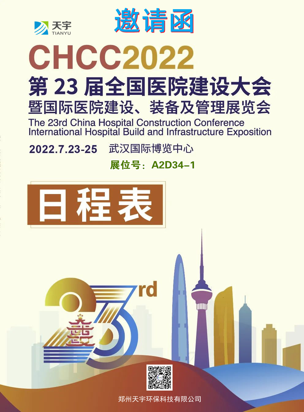 2022年7月23—25日,第二十三屆全國醫(yī)院建設(shè)大會(huì)暨國際醫(yī)院建設(shè)、裝備及管理展覽會(huì)將在湖北·武漢國際博覽中心隆重召開,鄭州天宇將作為【醫(yī)療用水整體解決方案】大會(huì)廠商精彩亮相,誠邀各界朋友蒞臨參觀見證。
